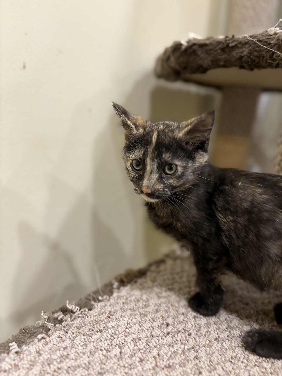 Becca is a sweet, quiet, and calm little kitten who brings the perfect mix of cozy snuggles and playful energy. While she’s gentle by nature, she definitely enjoys her daily zoomies and loves playing with the resident dog—she’s both cat and dog friendly!