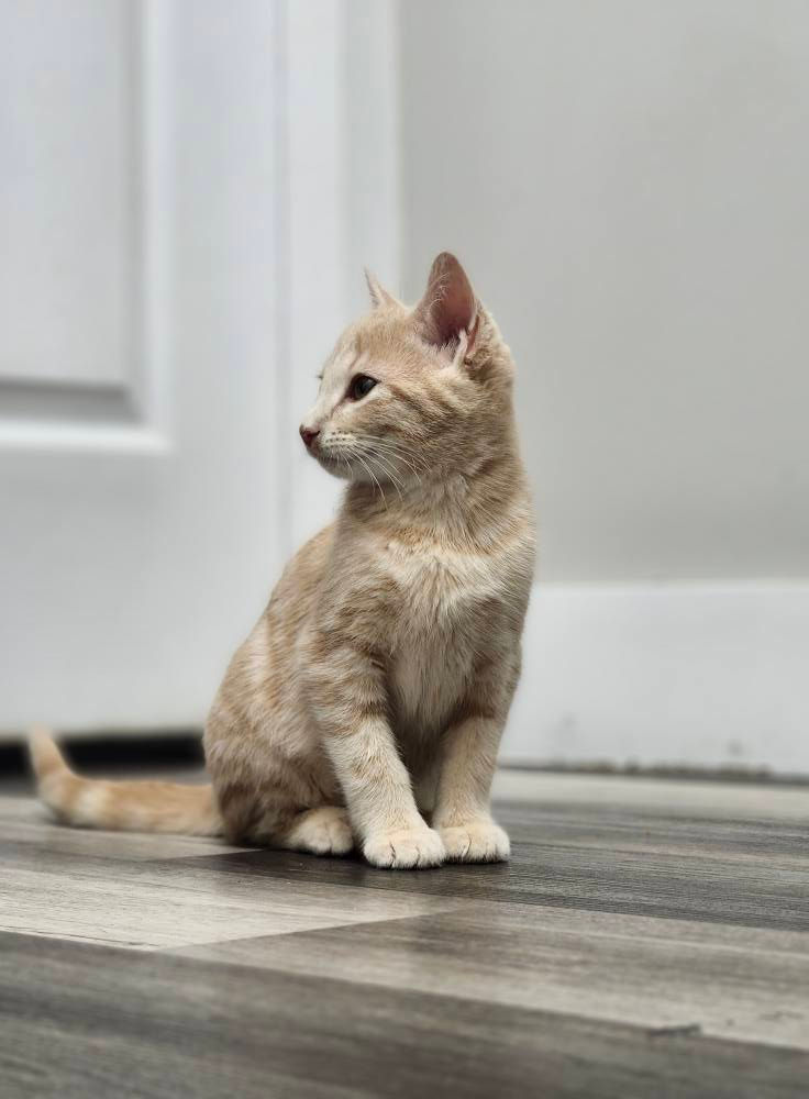 Benny is a bright-eyed little explorer with a heart full of curiosity. Like most kittens, he’s playful, energetic, and always ready to turn anything into a toy. Whether he’s pouncing on a spring, chasing a shadow, or climbing to new heights, Benny is happiest when he’s discovering the world around him.